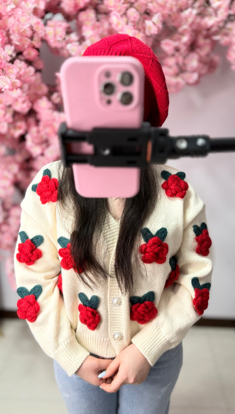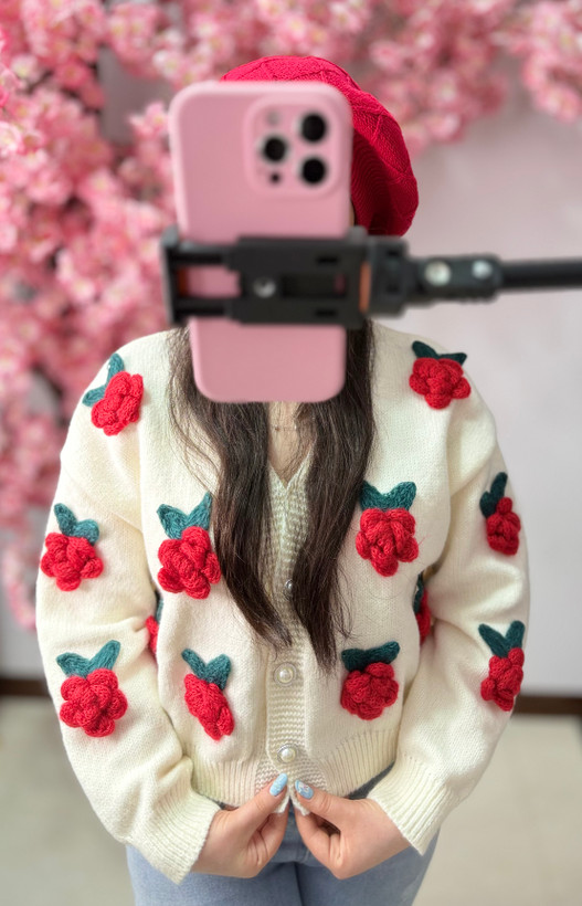 کاردیگن بافت وارداتی ولنتاین گل رزقرمز