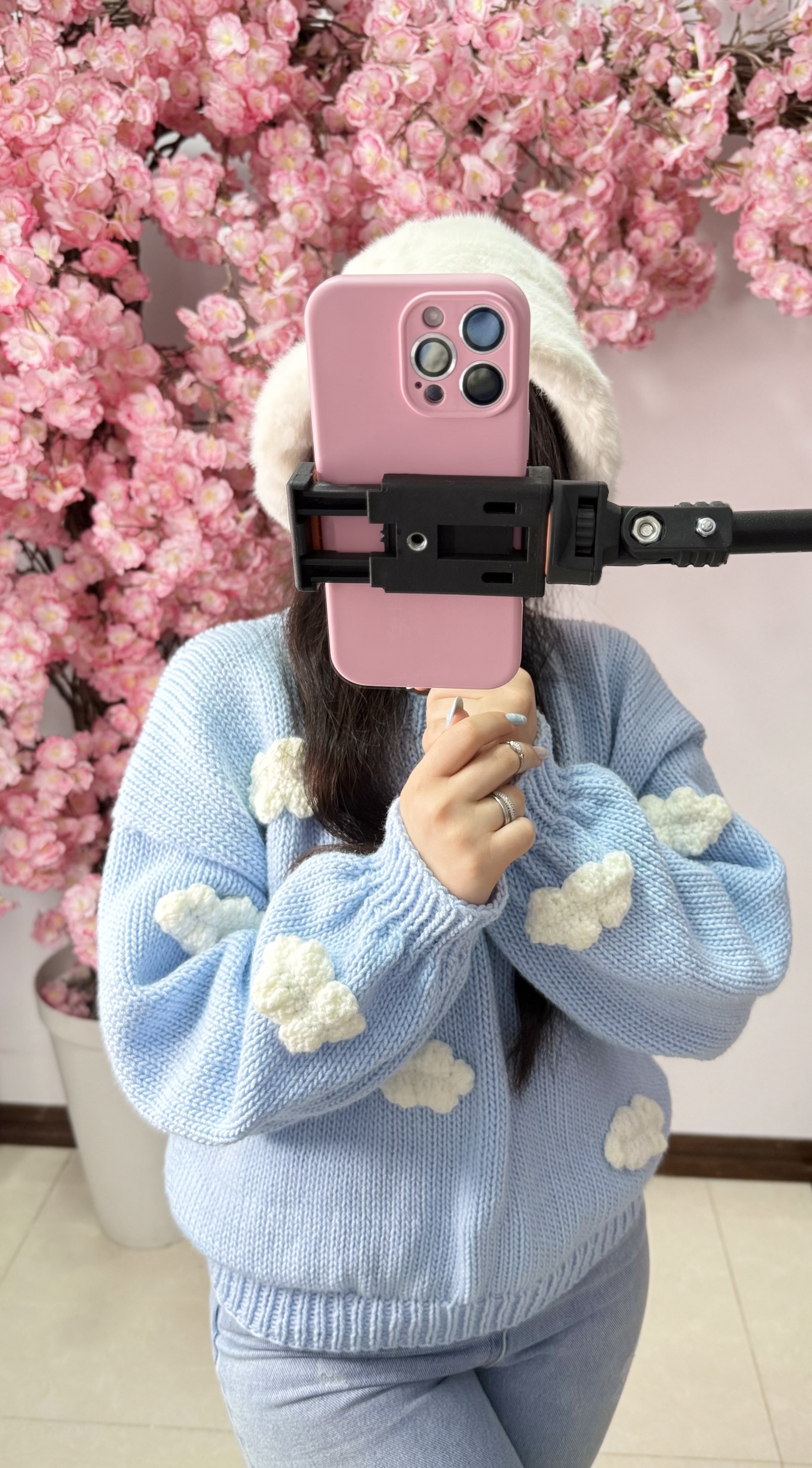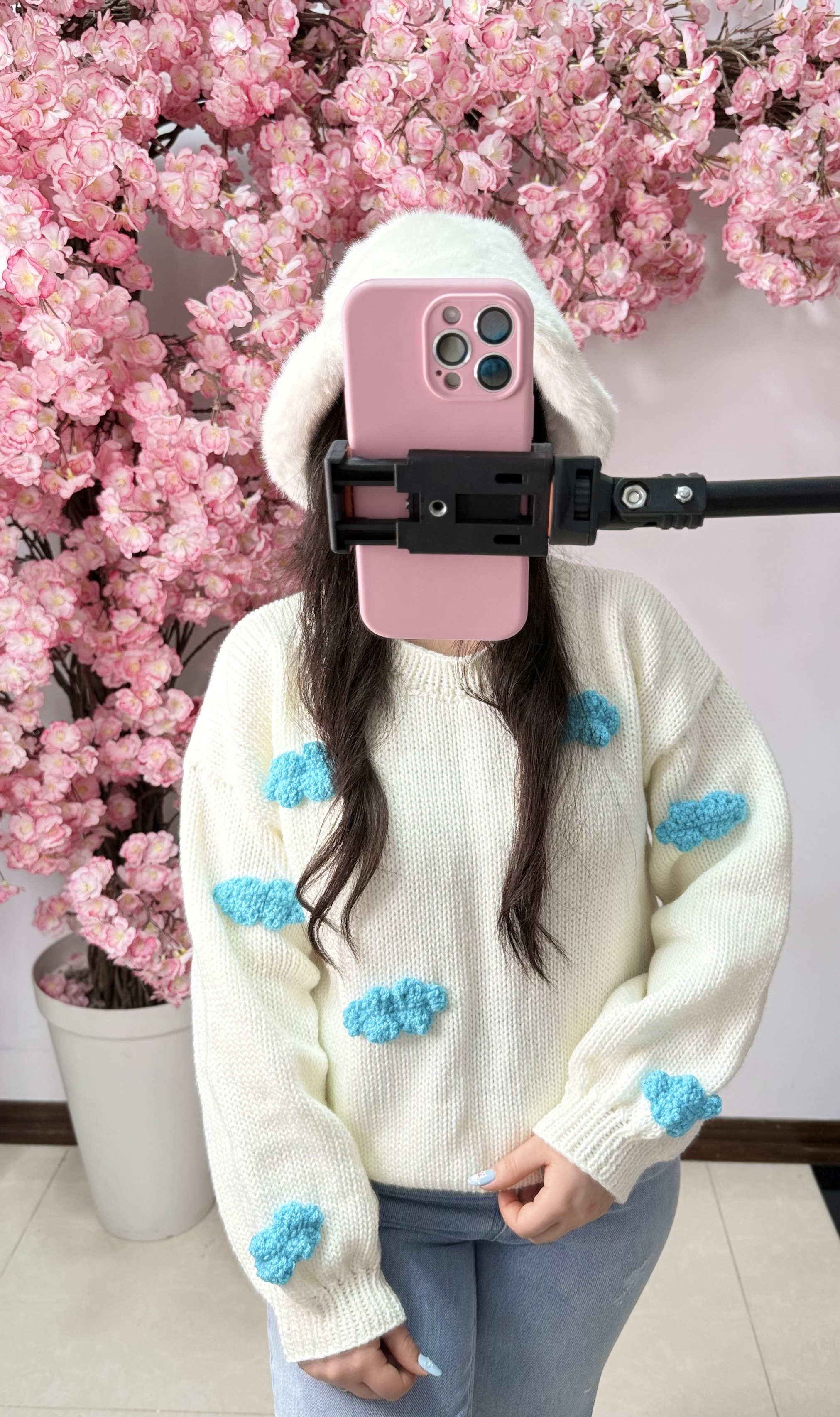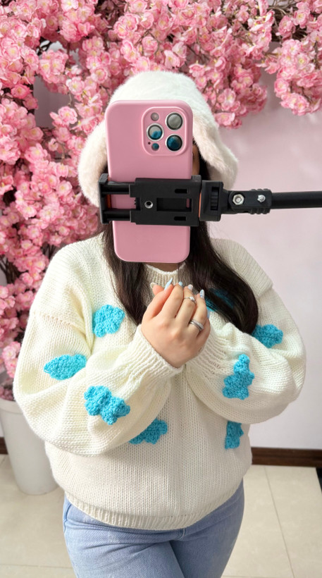 بافت فانتزی جلو بسته یقه گرد ابری