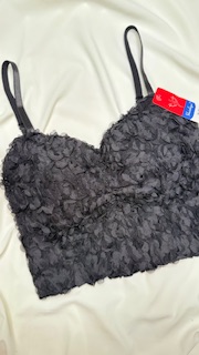 لایه ی رویی کراپ با تور لطیف طراحی شده و لایهی زیری هم آستر نرم و راحت داره که اصلاً پوست رو اذیت نمیکنه.