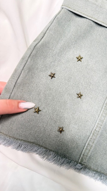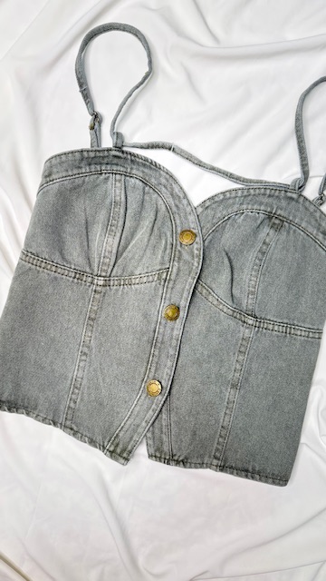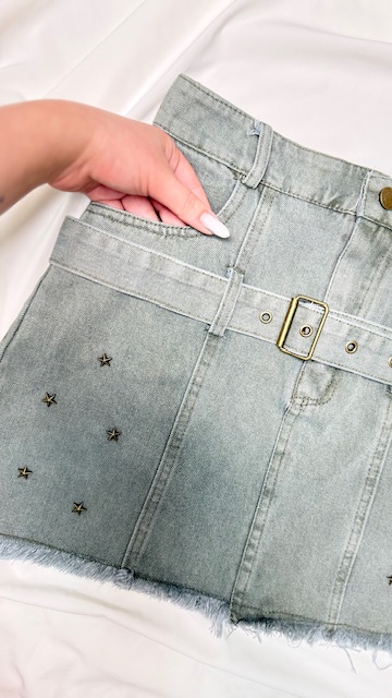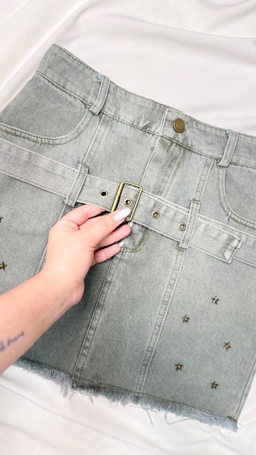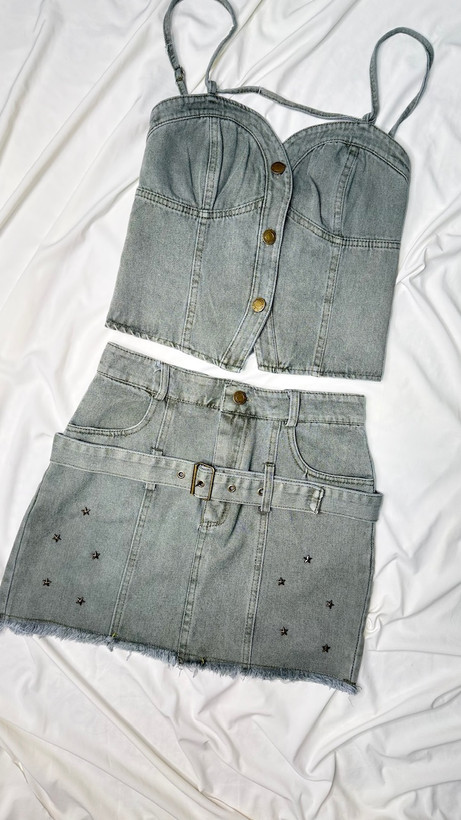 - این ست جذاب شامل یک کراپتاپ و یک دامن جین با کمربند قابل تنظیم است که روی دامن کار ستاره پرس شده به هیچ عنوان کنده نمیشه (ضد زنگ هست)